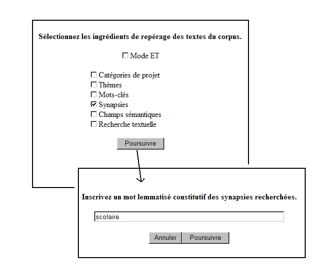 SynapsiesL'outil de repérage Synapsies demande d'abord d'entrer un mot puis offre la